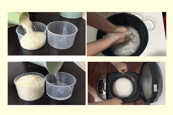 将米和水直接加入电饭煲