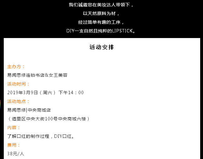 【易闻思修·活动】“唇唇”欲动,优雅女神 | DIY口红体验沙龙
