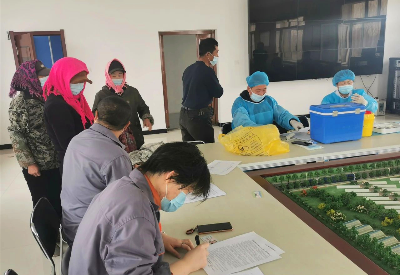 一大早,符合接种条件的员工陆续来到农场会议室,登记、接种,有序忙碌起来。