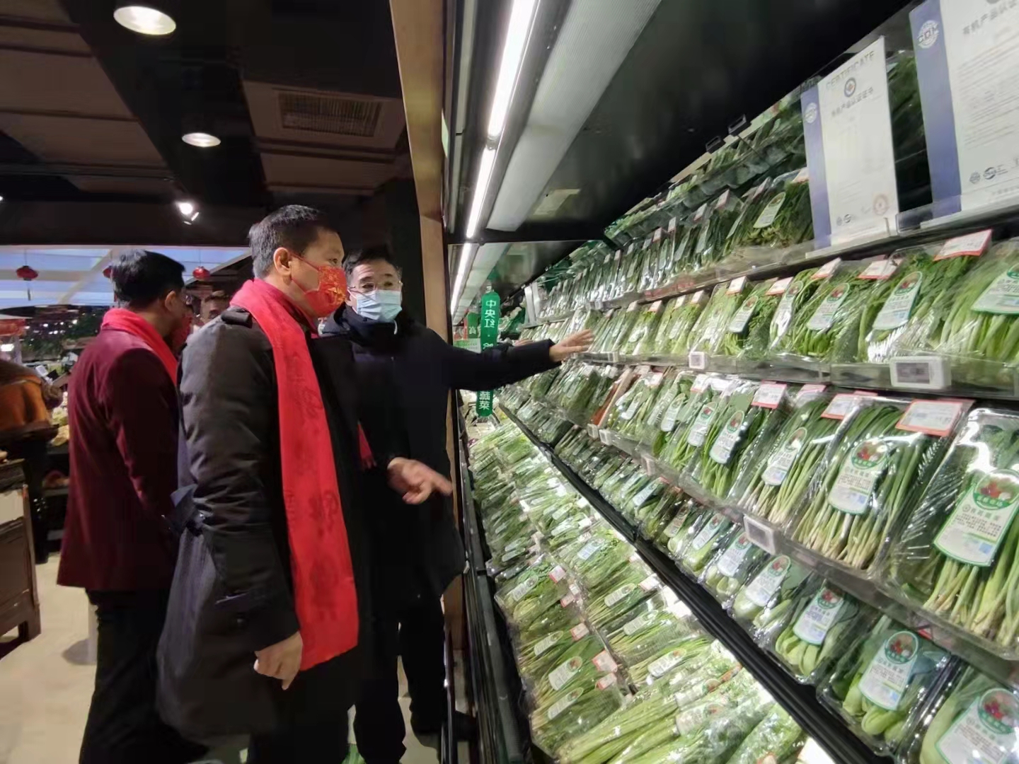 领导对中央红哈尔信超市春节期间,落实卖场商品供应、稳定市场物价,做好防控防疫及食品安全等各项工作,给予了肯定和鼓励!