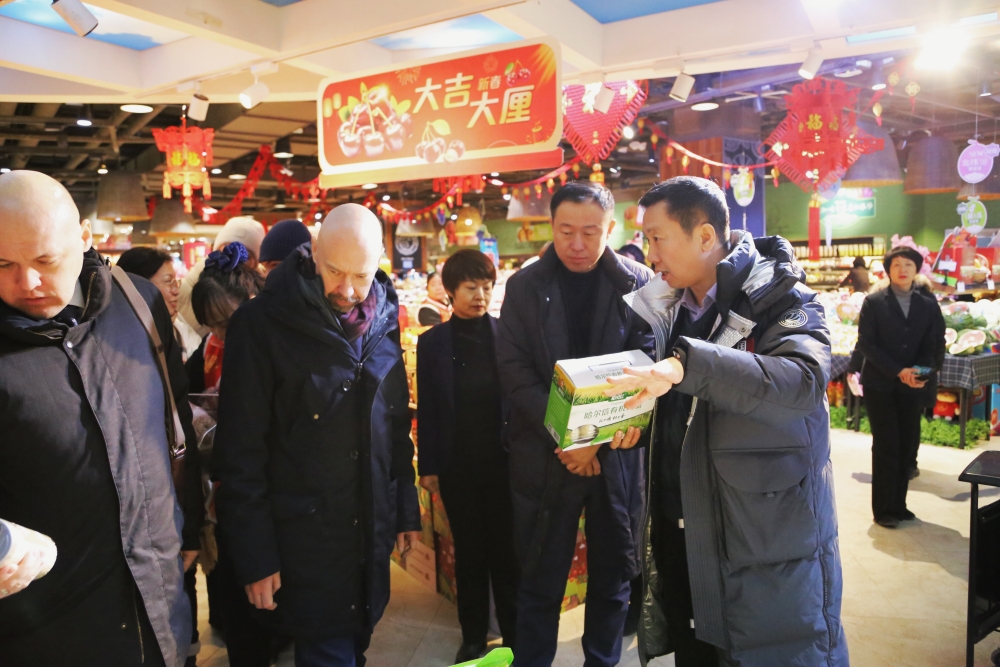 俄方参访团先后到我集团旗下的中央红有机农场、哈尔信阳光农园超市进行参观。中央红新农业公司总经理、农场场长向参访团介绍了中央红有机农业遵循中华传统农耕技术的科学种植、养殖技术及遵循标准。俄方参访团在参观农场的哈尔信有机蔬菜大棚、有机禽畜养殖单元后,对中央红有机农场采用高科技越冬暖棚发展有机种植非常感兴趣。俄方参访团的农业专家代表们也提出了很多专业性的问题,与中央红有机农场技术管理团队进行技术探讨。在参观哈尔信阳光农园超市时,参访团对哈尔信超市在有机产品的陈列展示等方面的管理赞赏有加,非常喜欢中央红哈尔信这种从田间地头到百姓餐桌的经营模式。