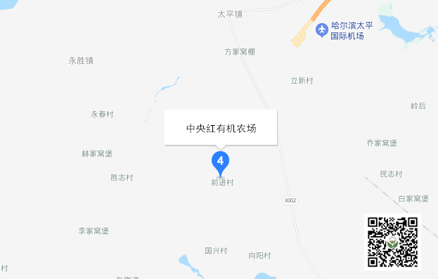 中央红新农业公司投资建设的中央红有机农场,位于哈尔滨市道里区太平镇前进村。中央红有机农场遵循有机农业标准生产,集种植、养殖、生态农业观光于一体。农场获得了多项有机产品认证证书。生态猪养殖单元被农业部评为国家级标准化示范猪场。农场连续多年被评为地方农业龙头企业及农业示范园区,获得黑龙江省十大标准化蔬菜生产基地、全国十佳蔬菜供应链等称号。农场生产的有机产品获得哈尔滨市名牌、市长质量奖、龙江特产、全国有机农产品品牌10强等荣誉。2017年2月16日,国务院汪洋副总理到中央红有机农场视察。